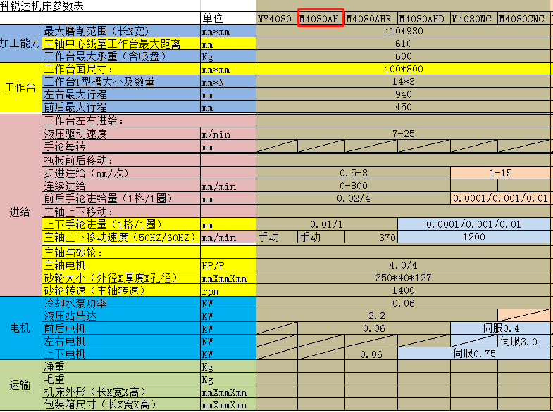 科銳達(dá)SGA2550AH液壓平面磨床工作臺X軸采用臺灣進(jìn)口液壓站、液壓閥實(shí)現(xiàn)工作臺左右往返運(yùn)動,性能穩(wěn)定,配有手動手輪在修砂輪/對刀/小件工件磨削時進(jìn)行小范圍移動,特殊配置前后配